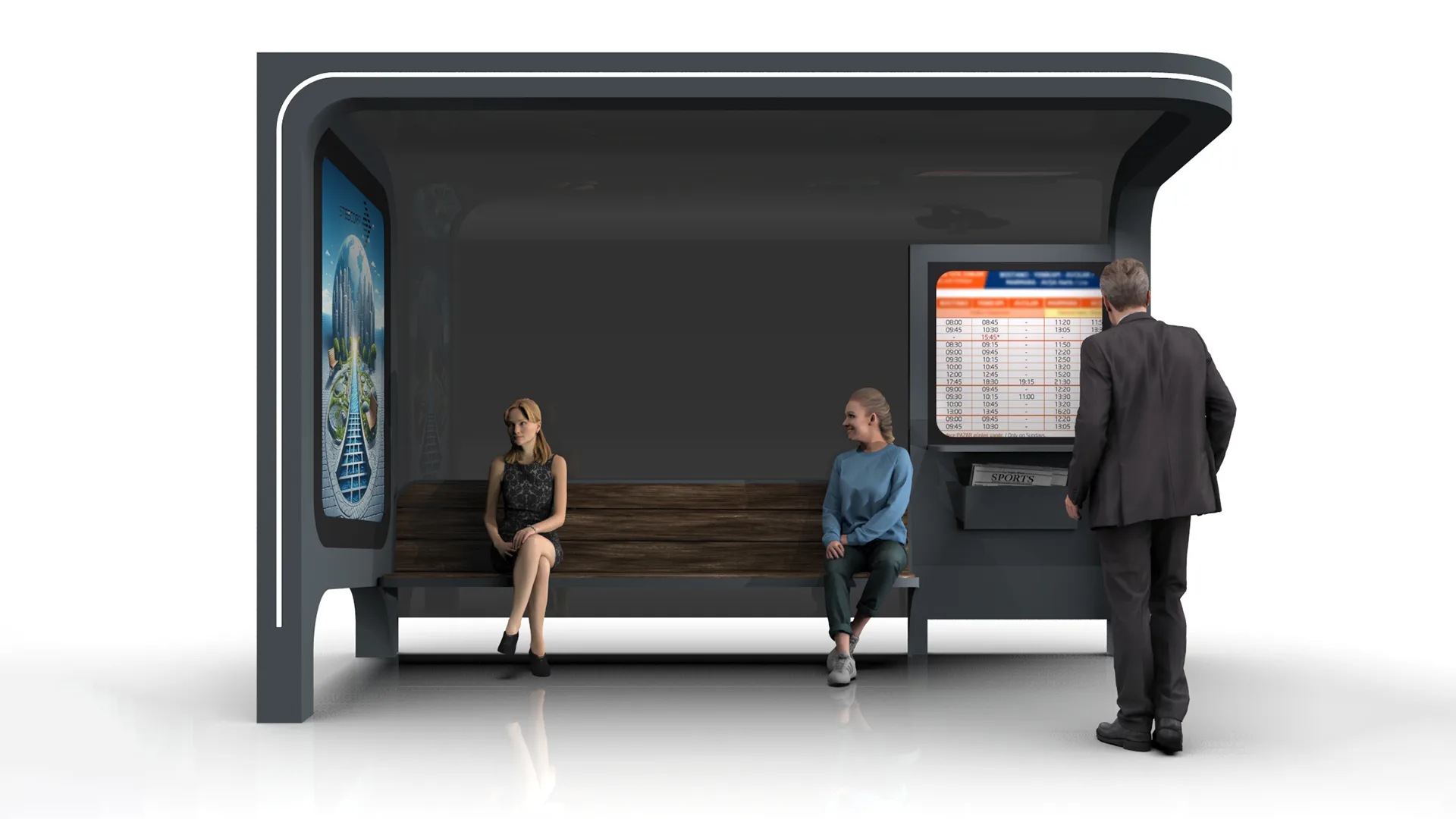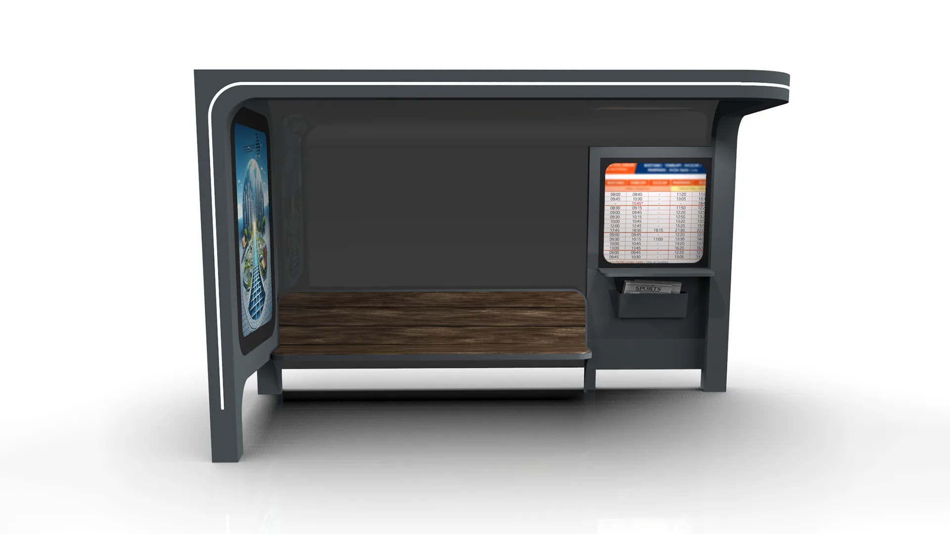 Şık ve ergonomik tasarımlarımız, yolcuların bekleme süresini çok daha keyifli bir hale getiriyor. Modern çizgiler ve kullandığımız kaliteli malzemeler sayesinde şehirlerin görsel kimliğiyle tam uyum sağlıyoruz. Ayrıca, her bir akıllı otobüs durağı ünitesinde gerçek zamanlı hareket saatlerini ve güzergah bilgilerini dijital ekranlarla paylaşıyoruz. Hava durumu ve şehir haberleri gibi güncel verilere yolcuların kolayca ulaşmasını sağlıyoruz. Ücretsiz Wi-Fi imkanı sunarak yolcuların internete kesintisiz bağlanmasına yardımcı oluyoruz. Bunun yanı sıra, USB şarj noktalarıyla mobil cihazların her an şarjda kalmasını destekliyoruz.