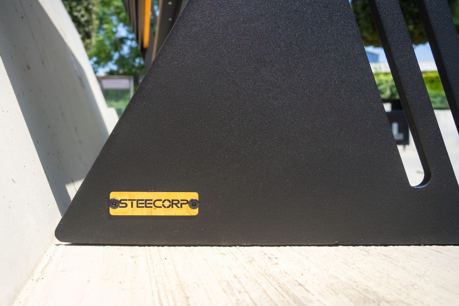 STEECORP STC-BANK, geometrik formları modern çizgilerle birleştiren, 2025 004775 belge numarasıyla tasarım tescili alınmış ikonik bir oturma ünitesidir. Paslanmaz çelik, alüminyum ve ahşap malzeme kombinasyonlarıyla üretilen bu banklar; parklar, AVM’ler ve kampüsler için yüksek konforlu ve sanatsal bir kent mobilyası çözümü sunar.