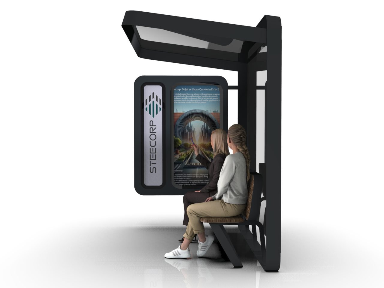 STEECORP otobüs durakları, sadece bekleme alanı sunmanın ötesine geçer. Entegre edilmiş dijital ekranlar aracılığıyla toplu taşıma bilgileri, güzergah değişiklikleri ve şehir bilgilendirmeleri yolculara anlık olarak ulaştırılabilir. Reklam alanları, şehir yönetimleri ve işletmeler için etkili bir iletişim platformu sunarken, opsiyonel olarak sunulan USB şarj üniteleri ve Wi-Fi erişimi gibi özellikler yolcuların modern ihtiyaçlarına cevap verir.